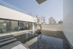 Lapitec permite la continuidad del diseño en el exterior, con suelos resistentes a los rayos UV, altas temperaturas, heladas y abrasión.